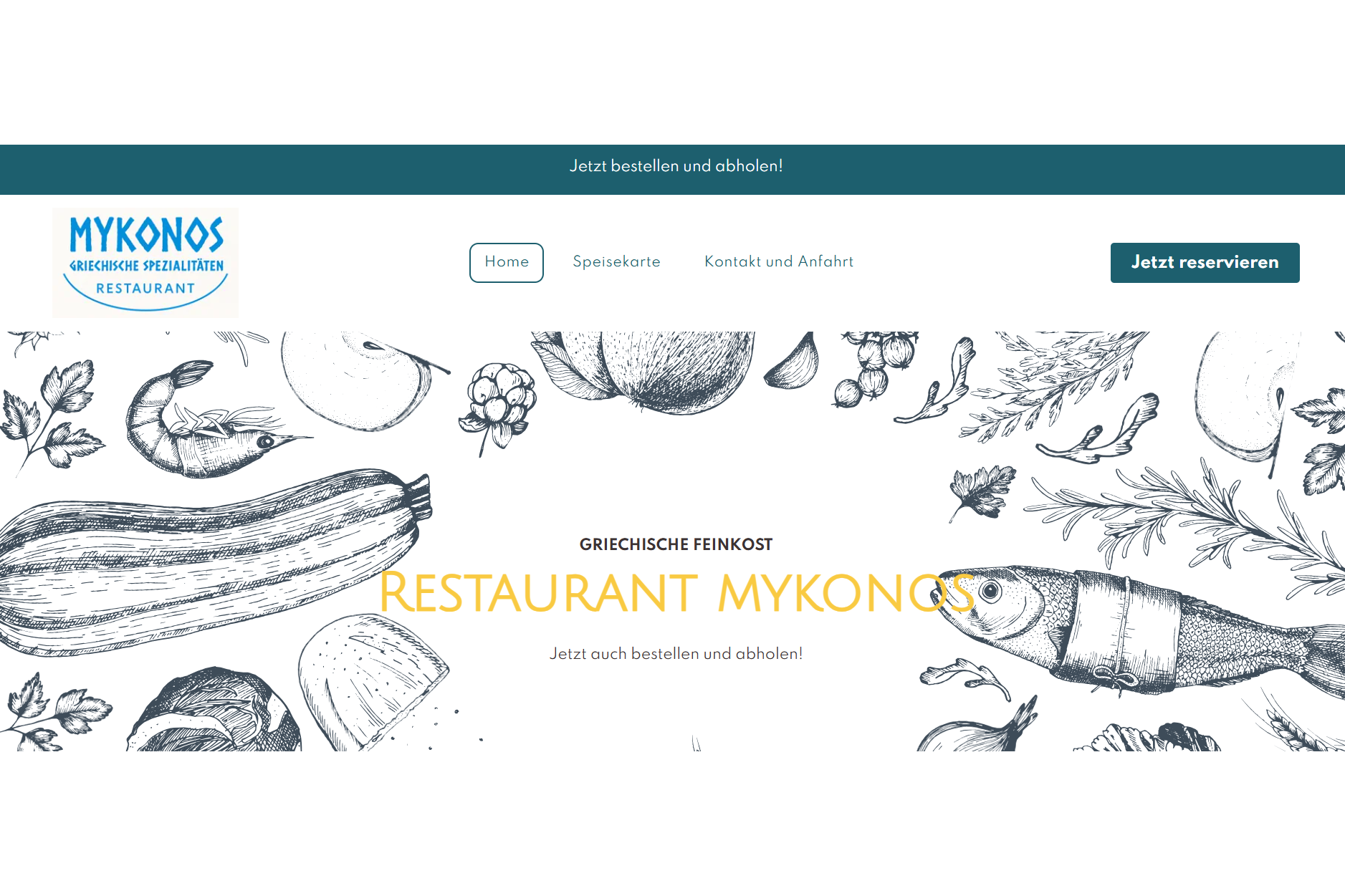 Illustratives Design für griechisches Restaurant mit Fokus auf Bestellung & Reservierung